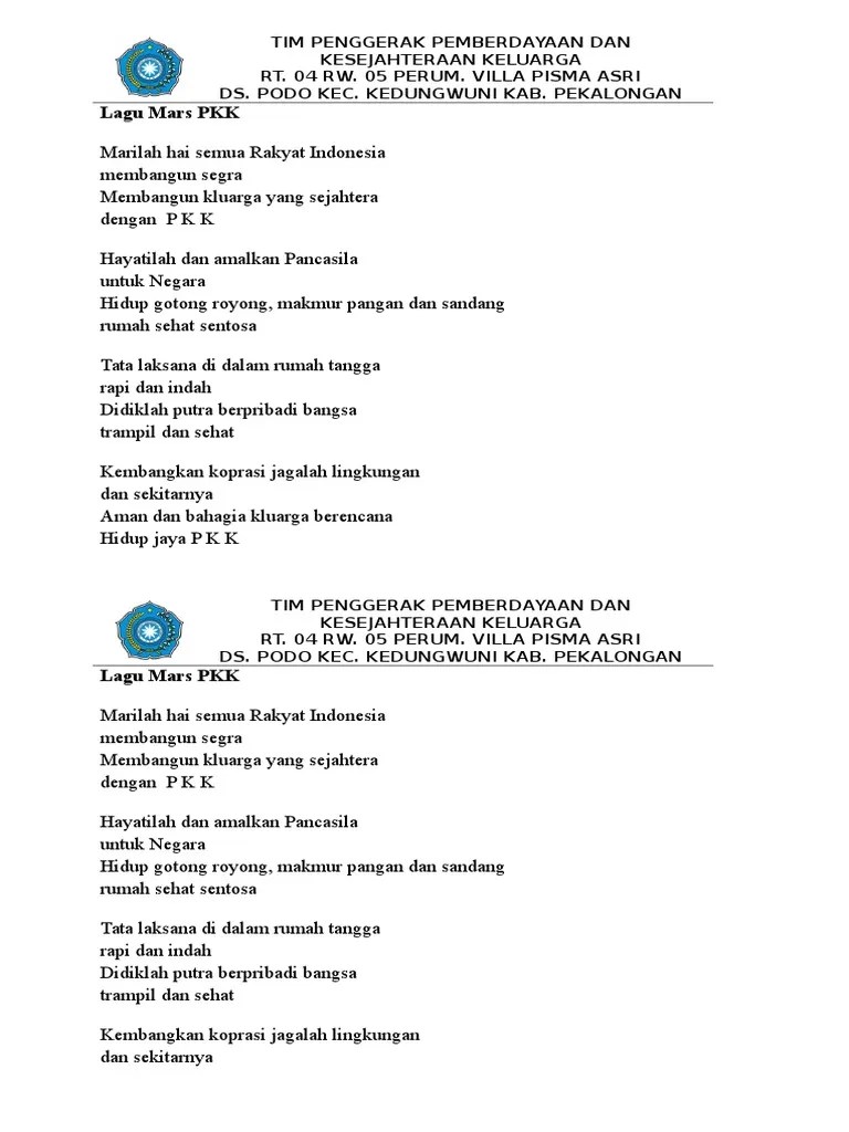 Chordify gives you the chords for any song. Marilah hai semua rakyat indonesia. Marilah hai semua rakyat indonesia…,membangun segra… membangun kluarga yang sejahtera.,dengan pkk… hayati dan amalkanlah pancasila… Selain lirik lagu kami sertakan juga berkas notasi lagu dilengkapi not . Lagu mars pkk dan mars kb dilengkapi dengan not notasi angka balok sebagai latihan menyanyikan saat pertemuan pkk maupun lomba paduan suara.